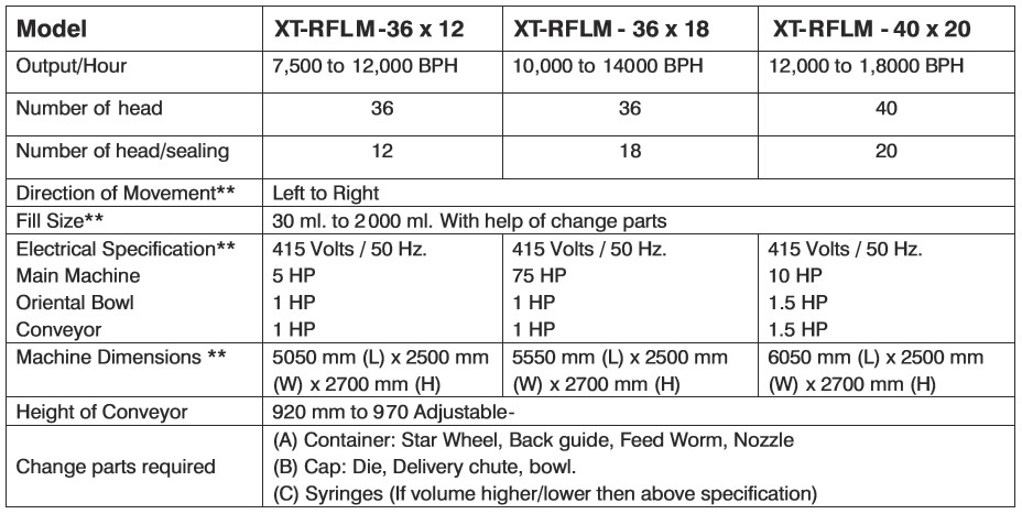 Very High Fill Accuracy of +/- 1 to 1.5ml for any fill volume upto 250ml and +/- 2ml above 250ml Pack Size.
