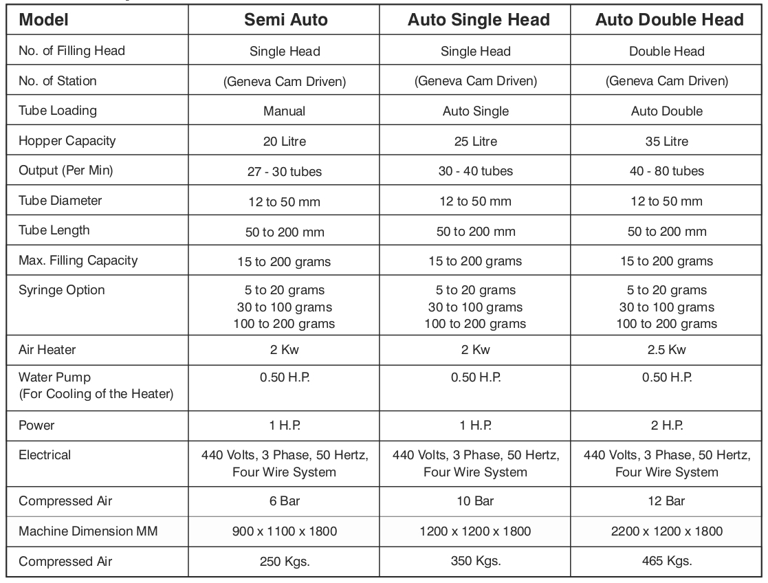 Tube Filling Machine for Plastic, Laminate and Aluminum Tubes (300 Ppm)