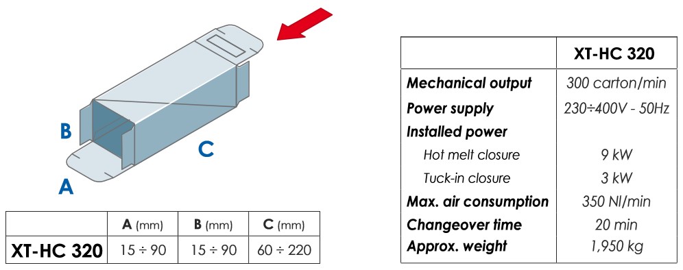 The HC320 is a side-load, continuous motion cartoning machine suitable for automatic packaging of pharmaceutical, nutraceutical, cosmetic and food products into pre-glued cartons. It features a balcony-style design, a neat separation between electrical and mechanical sections and belt-driven mechanical movements for low- noise operation. Positive carton pick-up and forming, controlled transportation based on an adjustable belt system, and coated guides to eliminate marking on components allow smooth operation and materials handling. The extended carton magazine offers a very high loading capacity and can be moved away from the product flow area to allow full machine accessibility for maintenance and changeover. Tuck-in, hot melt or a combination of tuck-in and hot melt (tamper evident) flap closures are available.